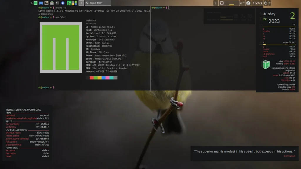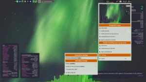 Conky in Mabox has been equipped with additional features that you will not find in any other Linux distribution. Here again, the wonderful Jgmenu was used with the addition of excellent glue – Bash scripts π