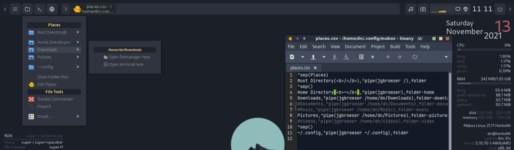 File Manager icon right click let you quickly browse important directories (configurable) and install/run some file related utilities.