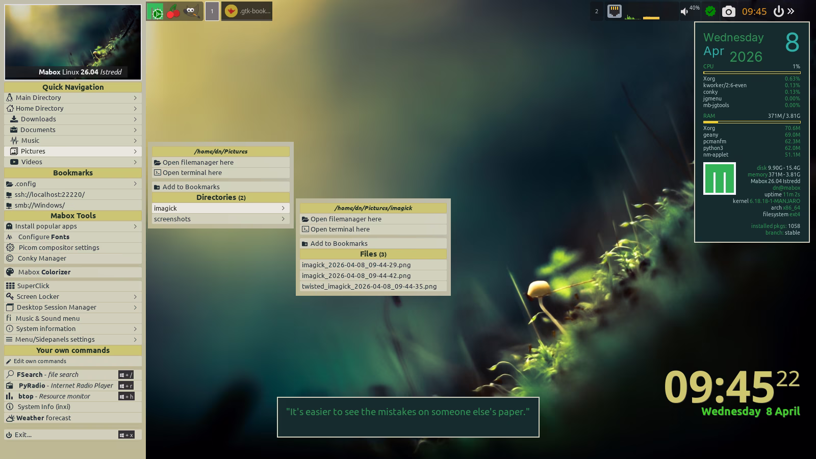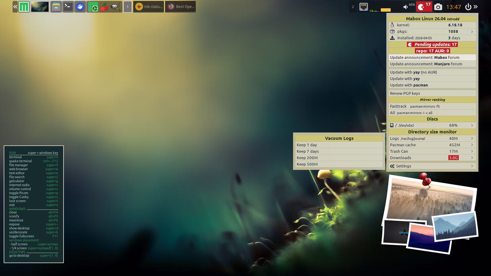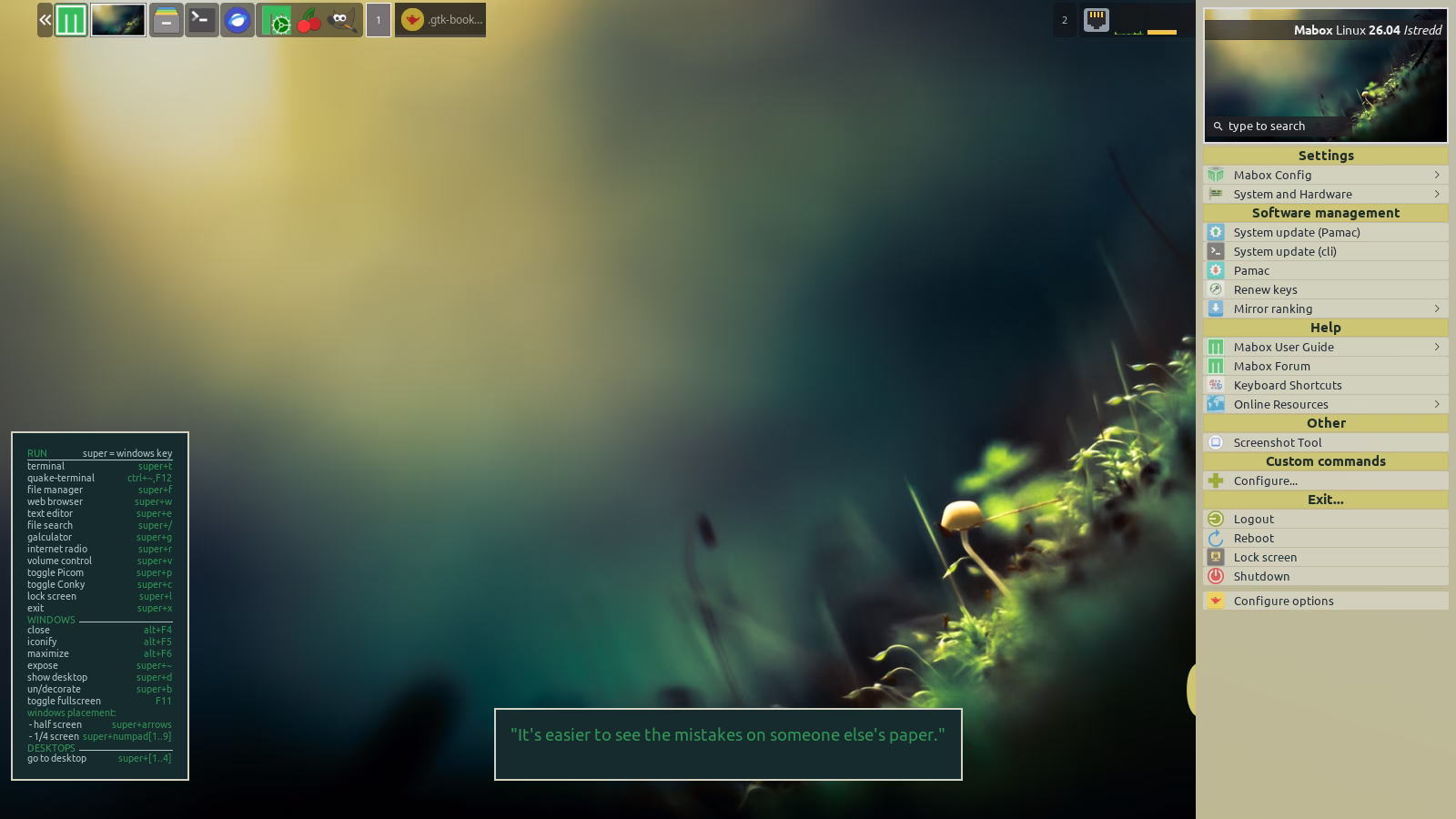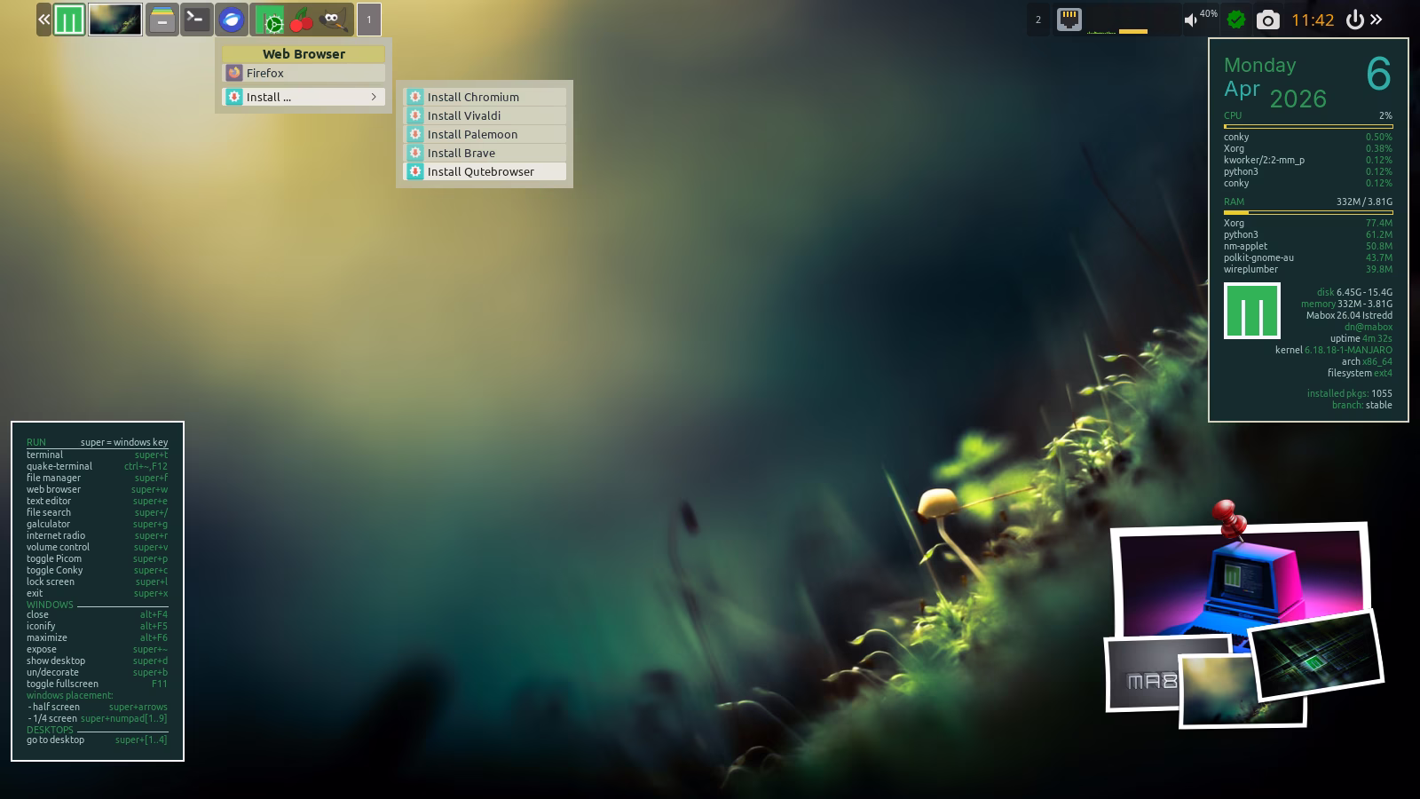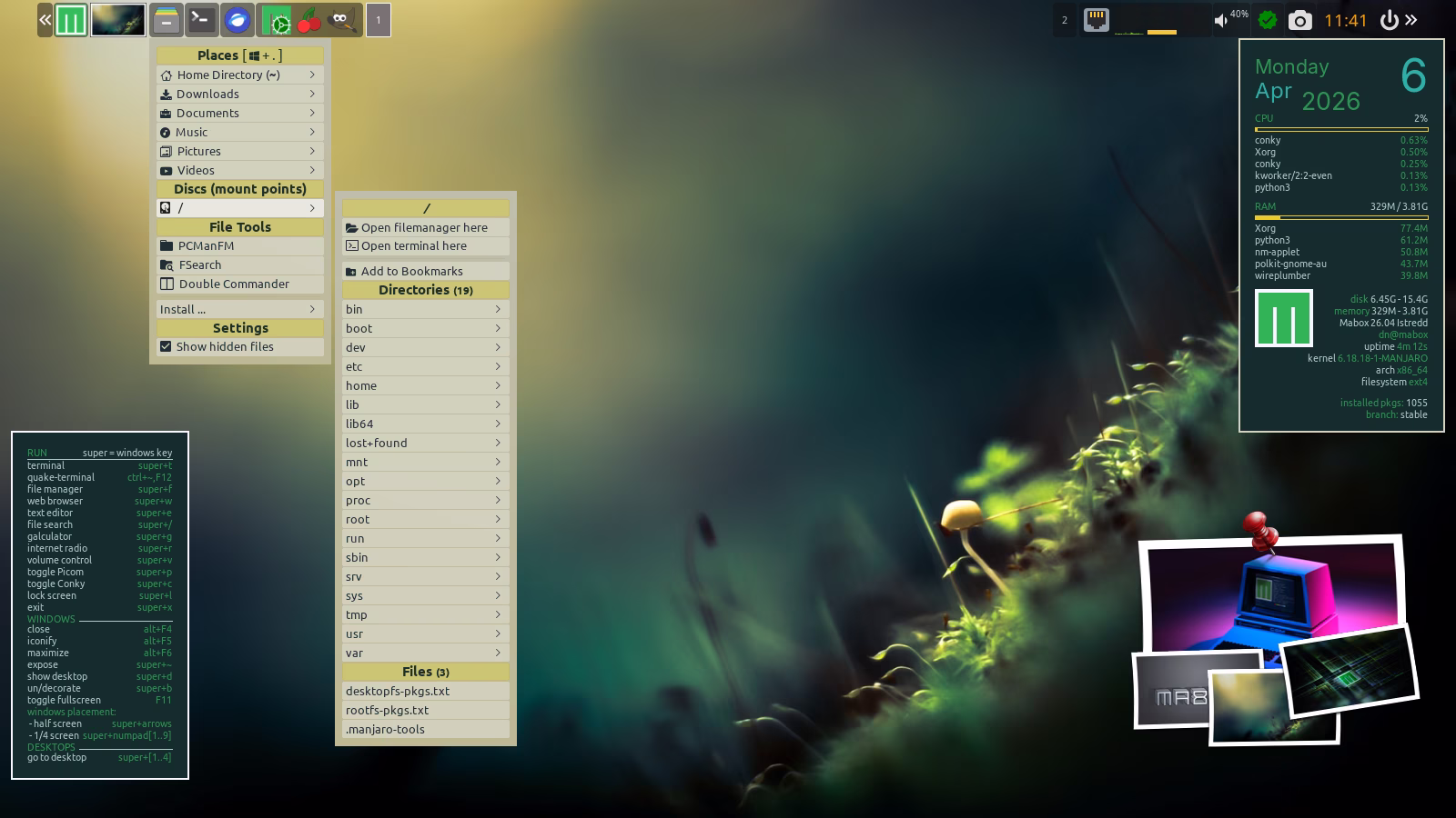 - educational — presenting keyboard shortcuts: mabox tools, PCManFM, Tiling terminal